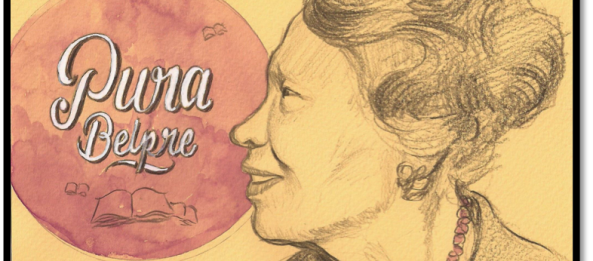 Portrait by Robert Liu-Trujillo. Read more about the portrait and his projects at http://investigateconversateillustrate.blogspot.com Permission to post given by artist.” data-medium-file=”https://latinosinkidlit.files.wordpress.com/2016/05/purabelpreportrait.png?w=300″ data-large-file=”https://latinosinkidlit.files.wordpress.com/2016/05/purabelpreportrait.png?w=593″/>