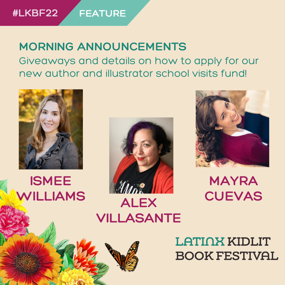 The Latinx KidLit Book Festival will be streamed live on the festival’s YouTube channel, or YouTube links can also be found on each individual event below. All posted times are in EDT!